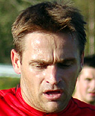 og gløden. Slår meget gode dødballer og vinner mye av nærkampene.