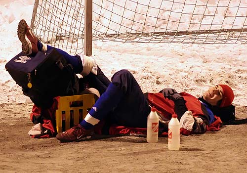 Etter en duell midt på egen banehalvdel ble han liggende å vri seg i smerte.