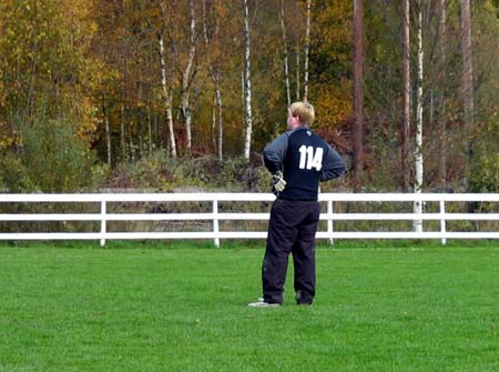 Tilbake lå Sollie med trynet plantet ned i gresset, han gikk Klinsmann