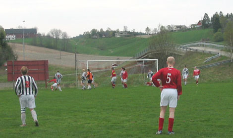 Corner til Søndre, som de får etter en klar offside. Halvsjanse