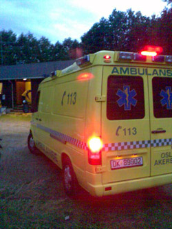 sorti for Dysterud som ble kjørt av gårde i ambulanse fra Gjerdrum stadion.