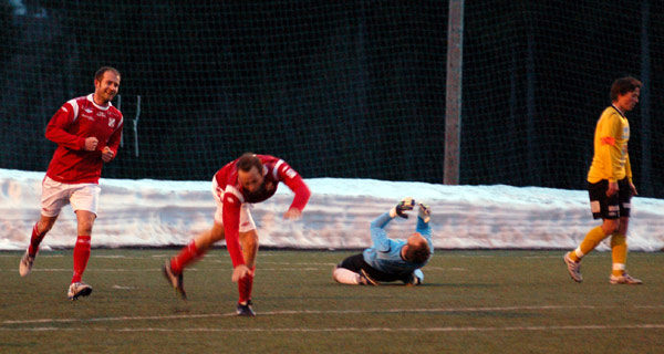 Slåtten har blitt omplassert som spiss, men har ikke scoret mål i vinter. Derfor smakte det ekstra godt med en kasse allerede i første kamp.