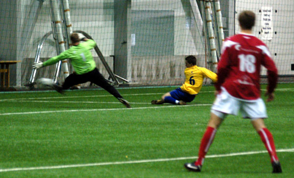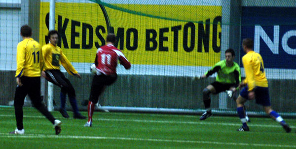 En misforståelse mellom Andre Schelander og Glenn Mærli gjorde at Rømskog enkelt kunne ta ledelsen 1-0. Hva som skjedde er usikkert, men bra var det i alle fall ikke. To minutter senere var det dagens kaptein Carl Ditlev Gran som ville leke julenisse i mars. På sju meter forsøkte han seg med en støttepasning, rett til en motstander. 2-0 etter fire minutter. Det var så vidt passert en halvtime av kampen da Mærli og resten av laget følte det var på tide å gi bort flere mål. Et frispark fra 25 meter gav Mærli en svak retur på. Han nærmest glapp ballen ut av hendene og la den på streken. Ikke en rød spiller i nærheten og dagens enkleste mål. 0-3 i LSK-hallen.